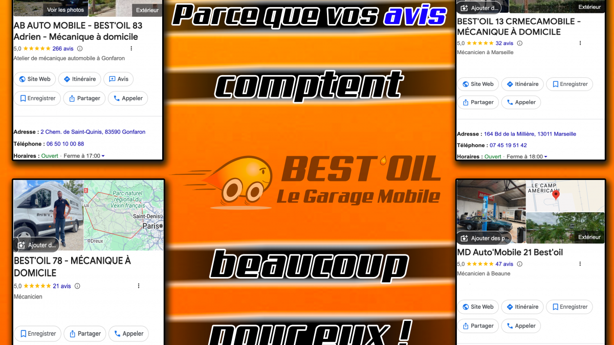 #BestOil #GarageMobile #MécaniqueADomicile #AvisClients #SoutienLocal #Entrepreneurs #Confiance #GoogleMyBusiness